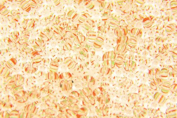 Orange and Green Stripes on Crystal Preciosa 8/0 Seed Beads