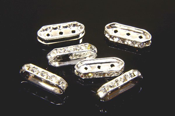 18x6mm Silver Plated Crystal Slider, 6 pieces