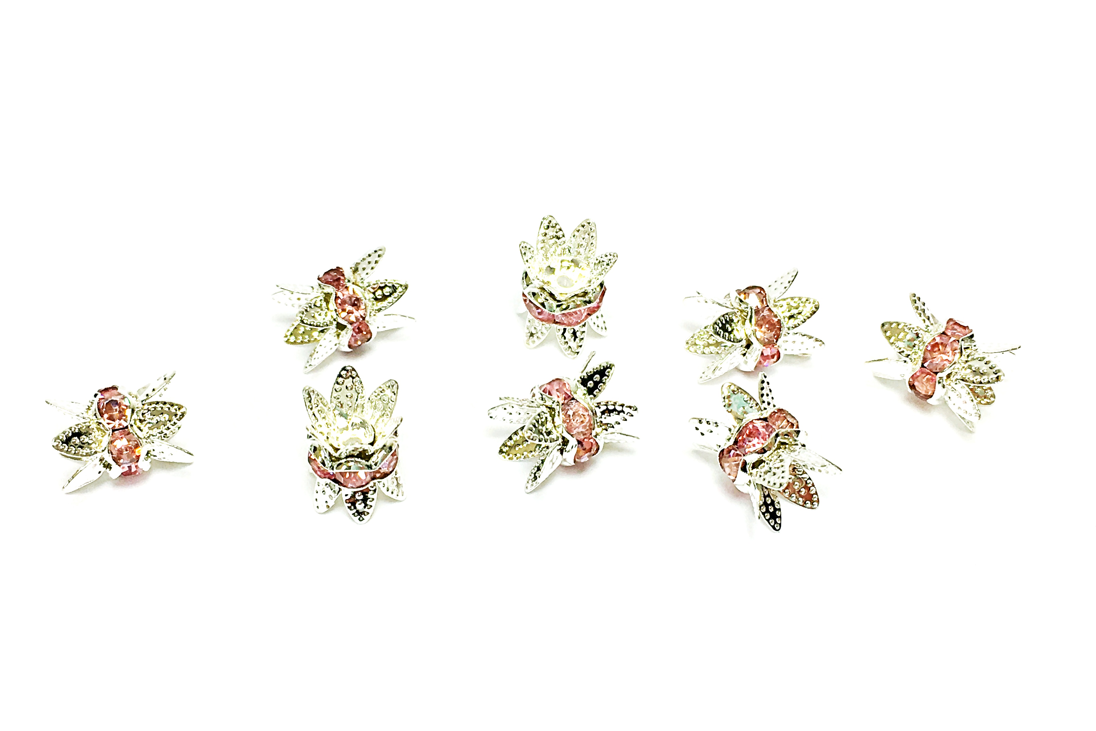 7mm Double Bead Cap with Facetted Crystal Rondelle. 8 Pieces.