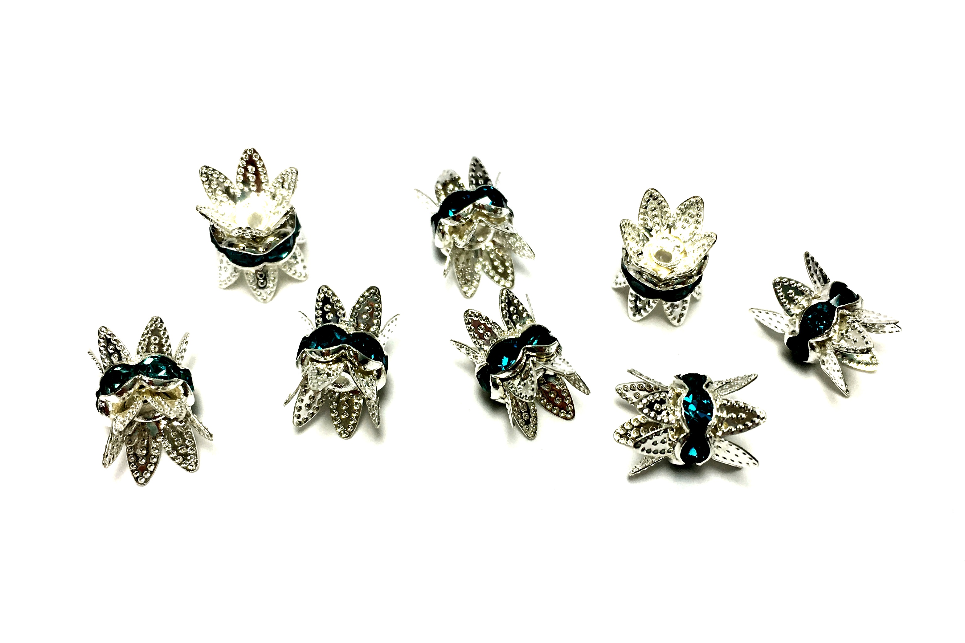 6mm Double Bead Cap with Facetted Crystal Rondelle. 8 Pieces.