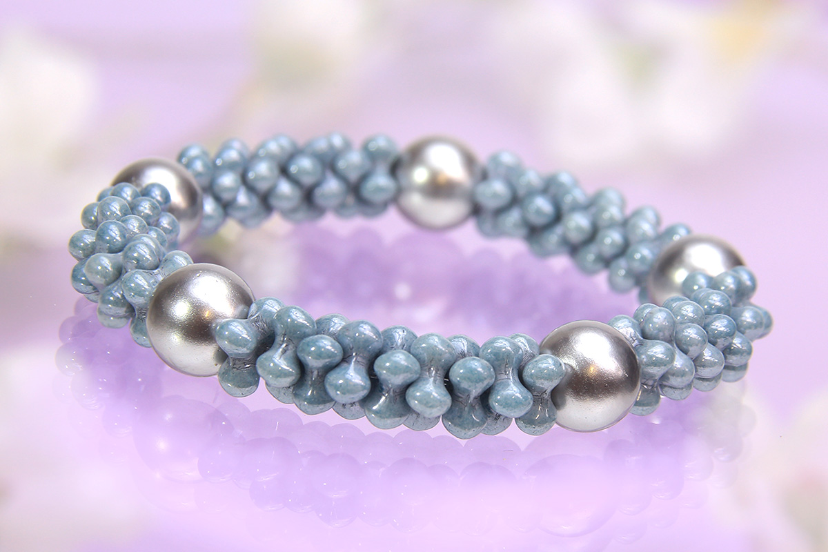 The stunning Tidal Blue Neptune Bangle is a fantastic and easy design that is bound to brighten your wardrobe! Suitable for beginners and advance jewellery makers alike, this bracelet allows you to use interesting and unusual shaped DaisyQuad beads to create a gorgeous, wearable piece of jewellery.