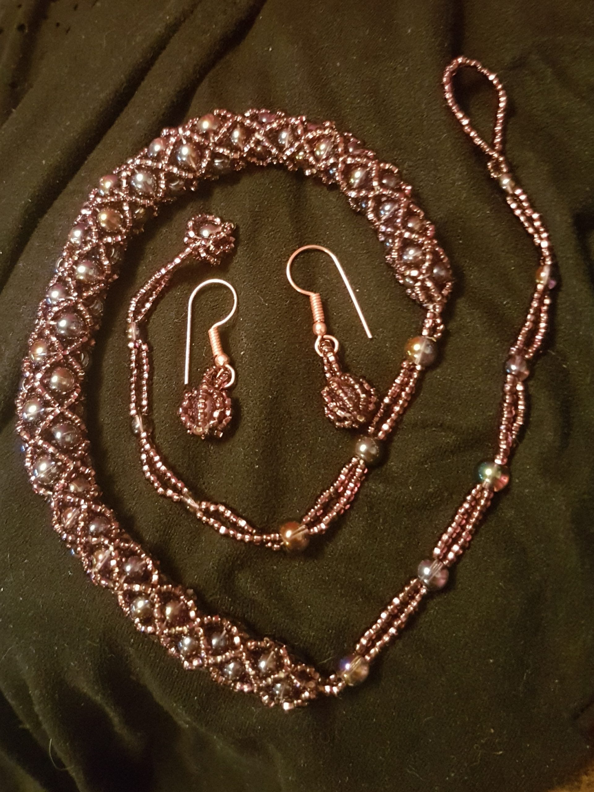 I kept two 6mm beads aside as suggested. I made up the earrings from skills learnt from making the necklace 🙂 I will be buying more beads to make this style again .
