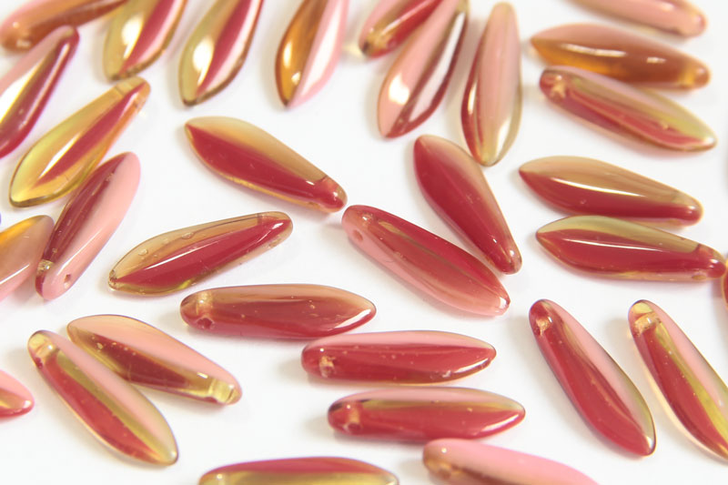 5x16mm Amber Rose Czech Glass Daggers, 40 beads. Pressed Czech Glass with a gloss surface
