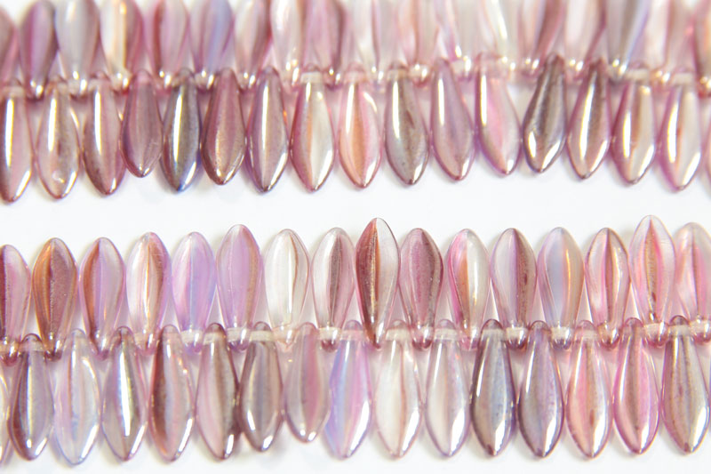 5x16mm Amethyst Lustre Czech Glass Daggers, 40 beads. Pressed Czech Glass with a lustre surface