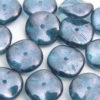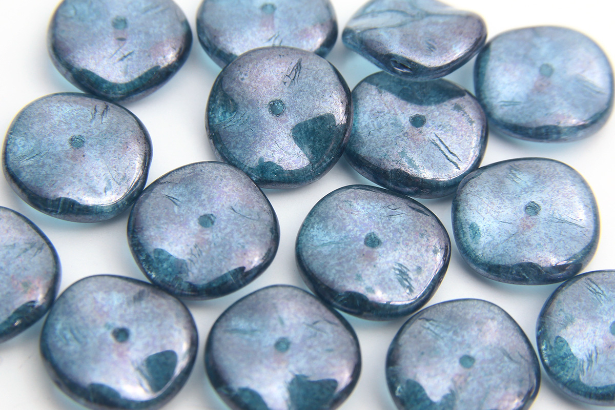 12mm wave surfaced lustre coating gives a spectral sparkle. The undulating surface of the bead causes a ripple to pass through the metallic surface. The centrally located hole allows this bead to be used as a clasp or in combination with seed beads and fire polished beads during stringing or embroidery.