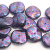 12mm wave surfaced shiny picasso like finish gives a spectral sparkle.The undulating surface of the bead causes a ripple to pass through the metallic surface. The centrally located hole allows this bead to be used as a clasp or in combination with seed beads and fire polished beads during stringing or embroidery.