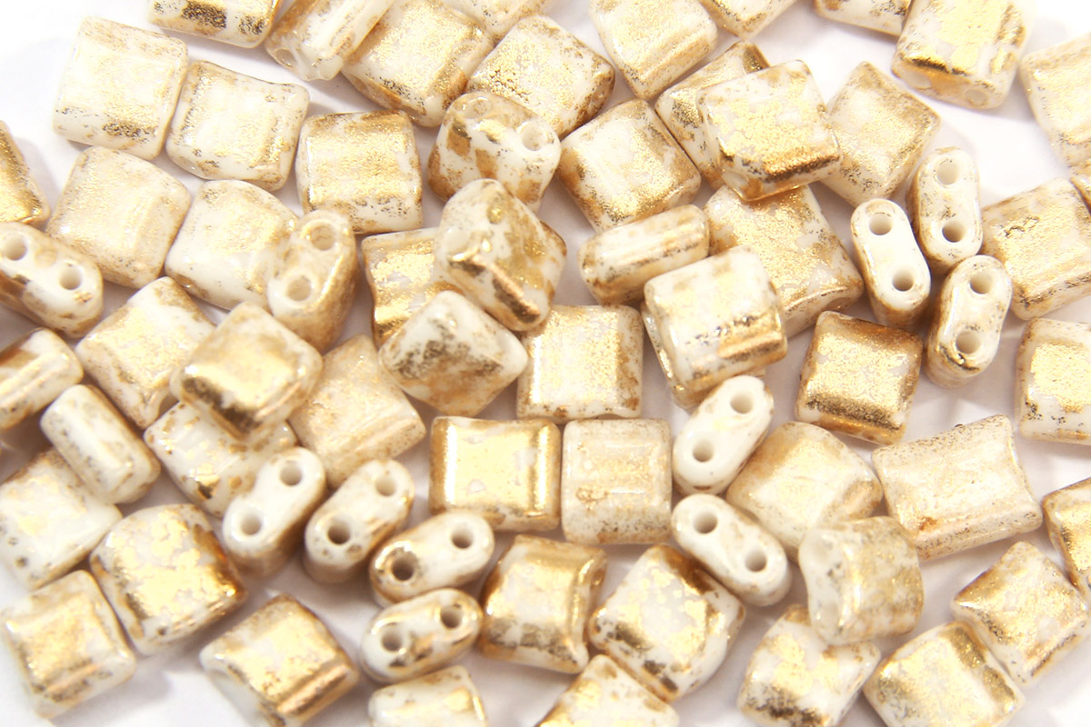 5mm Picasso White Gold Mini Tiles. 10g bag, approx 80 beads