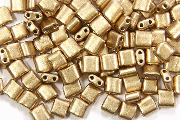 5mm Satin Gold Mini Tiles, 10g, approx 100 beads