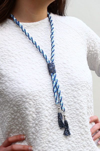 Made using supreme quality Smooth and Slinky Cord, beautiful silver plated cone tassel bead caps, vibrant Preciosa seed beads and an easy-on magnetic clasps, the finished design of this Kumihimo bracelet and necklace is both fun and effective.