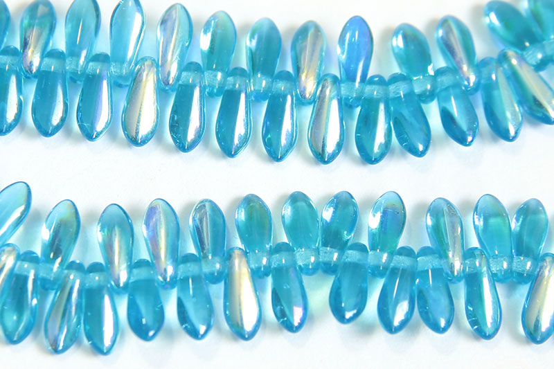 3x7mm Azure Blue AB Czech Glass Daggers, 100 beads. Pressed Czech Glass with a Aurora Borealis surface