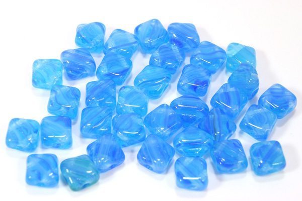 6x6mm Swirled Blue Czech Silky Beads, 40 beads