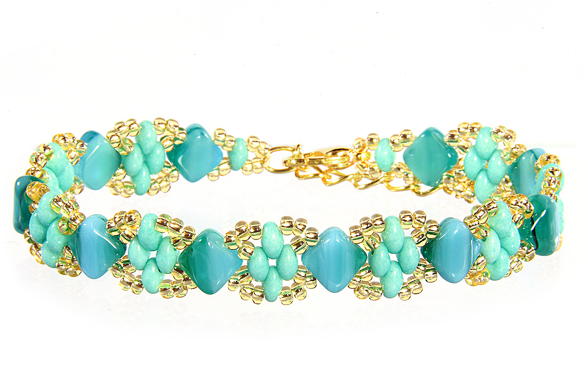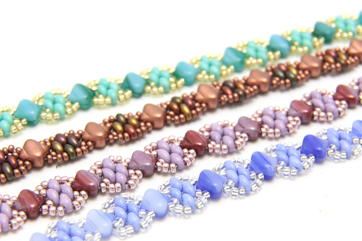 Each kit makes TWO beaded bracelets using Czech two hole beads. Includes two needles. Twice the fun and all too easy to make.