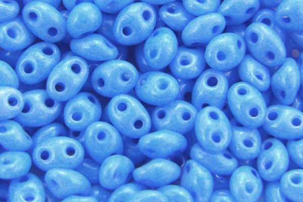 2.5x5mm Satined Sky Blue Preciosa Twin Beads, 12.5 grams