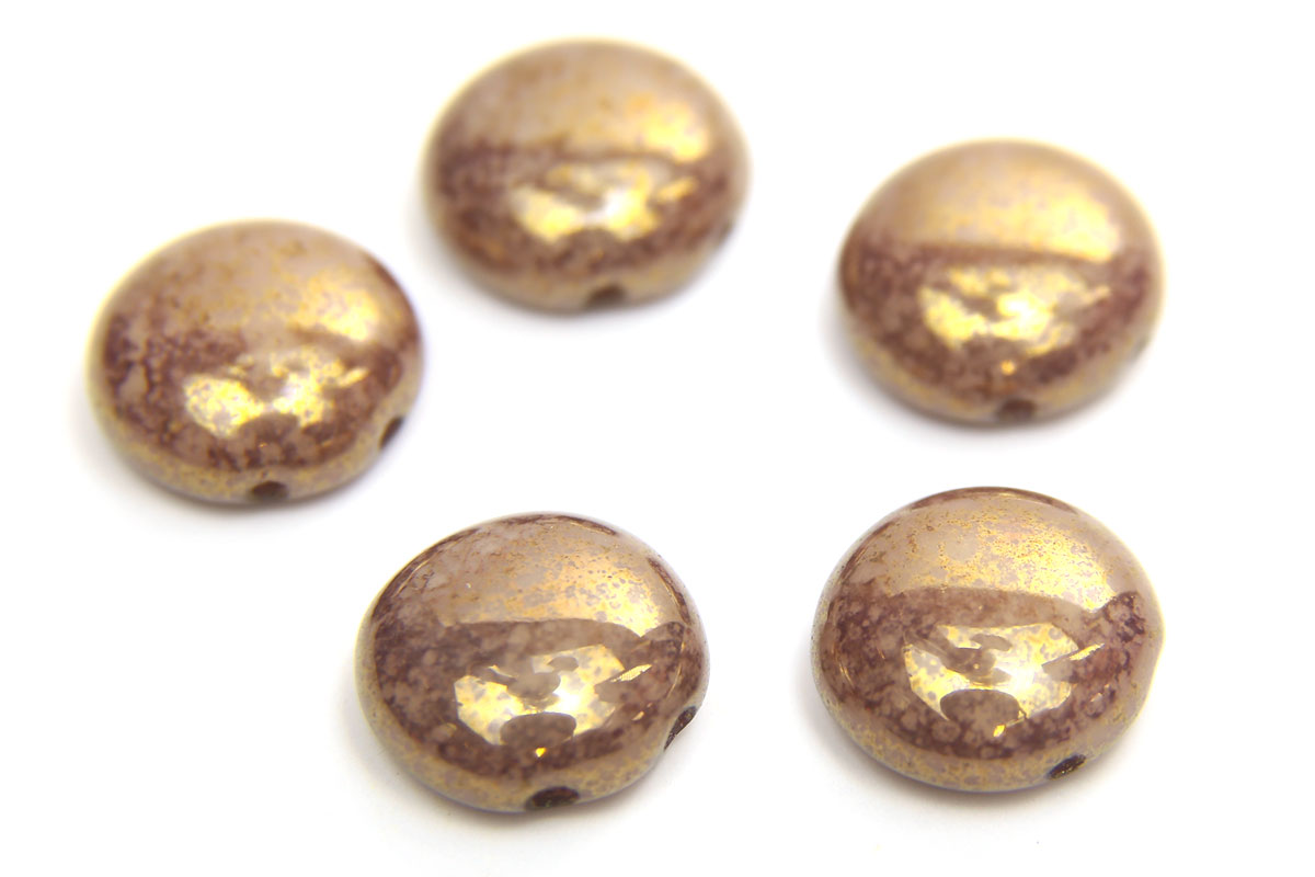 Gold Picasso 12mm 2-HolePreciosa Candy Beads, 5 pieces