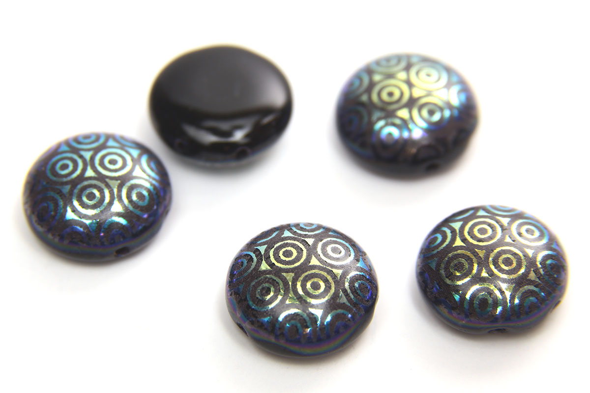 Midnight Gold Stencil 12mm 2-HolePreciosa Candy Beads, 5 pieces