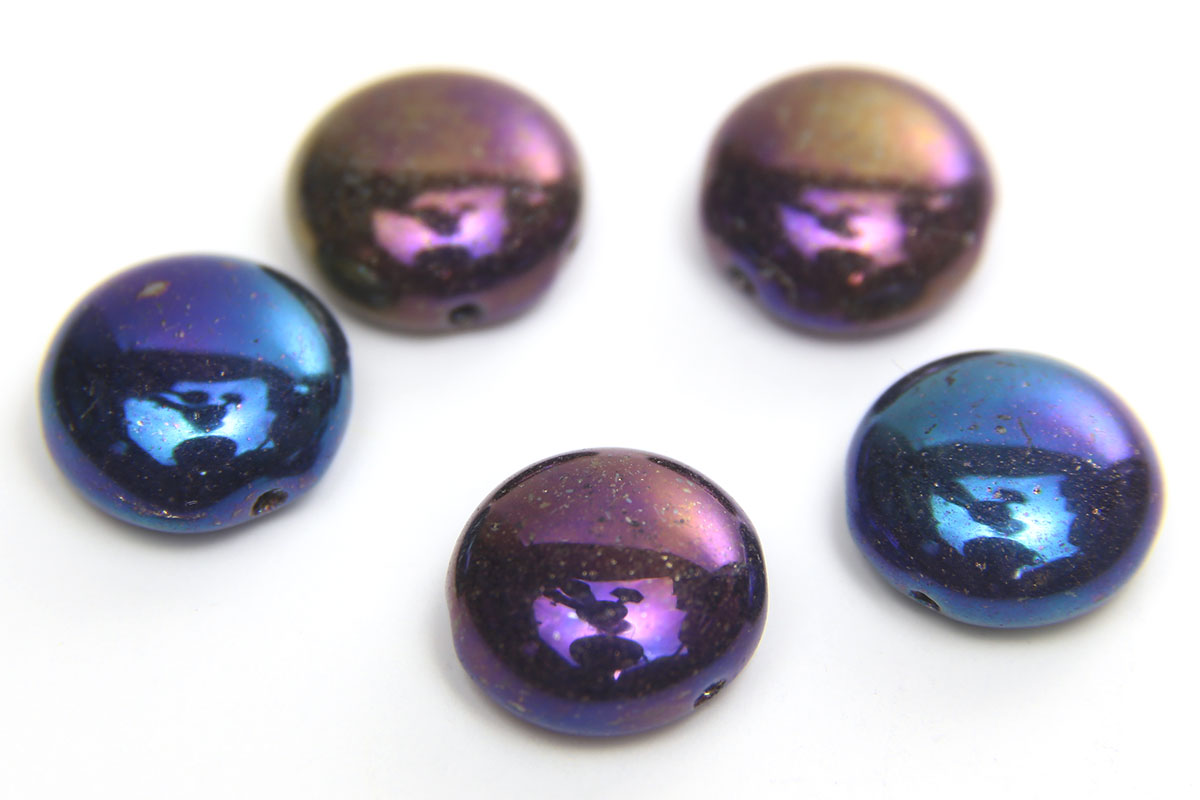 Peacock 12mm 2-HolePreciosa Candy Beads, 5 pieces