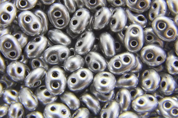 2.5x5mm Satined Silver Preciosa Twin Beads, 12.5 grams