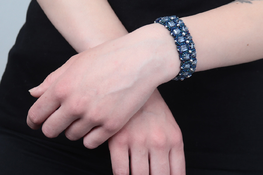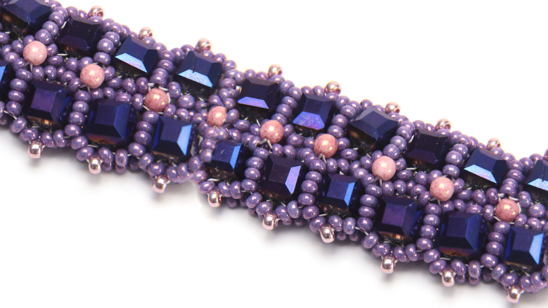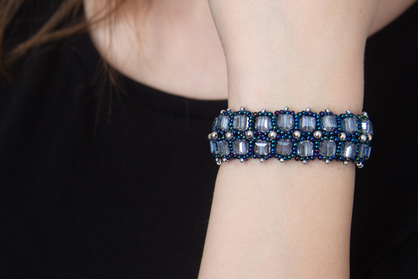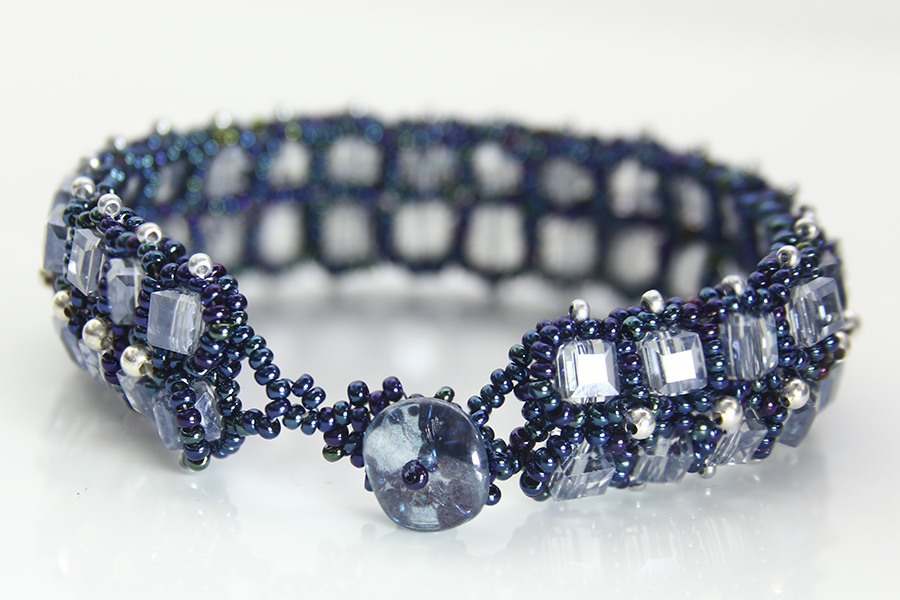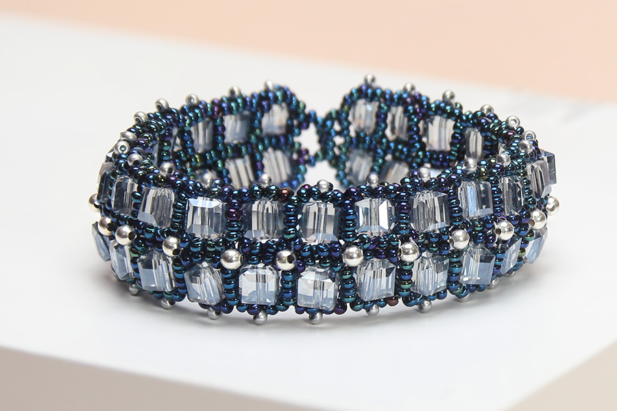 A stunning bracelet made with Preciosa seed beads and 6mm Crystal Cubes