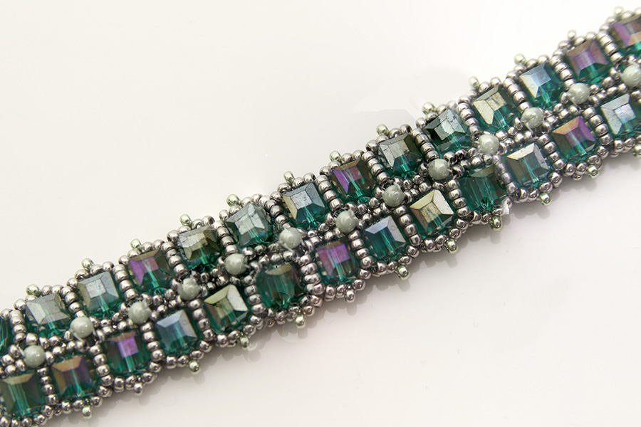A stunning bracelet made with Preciosa seed beads and 6mm Crystal Cubes