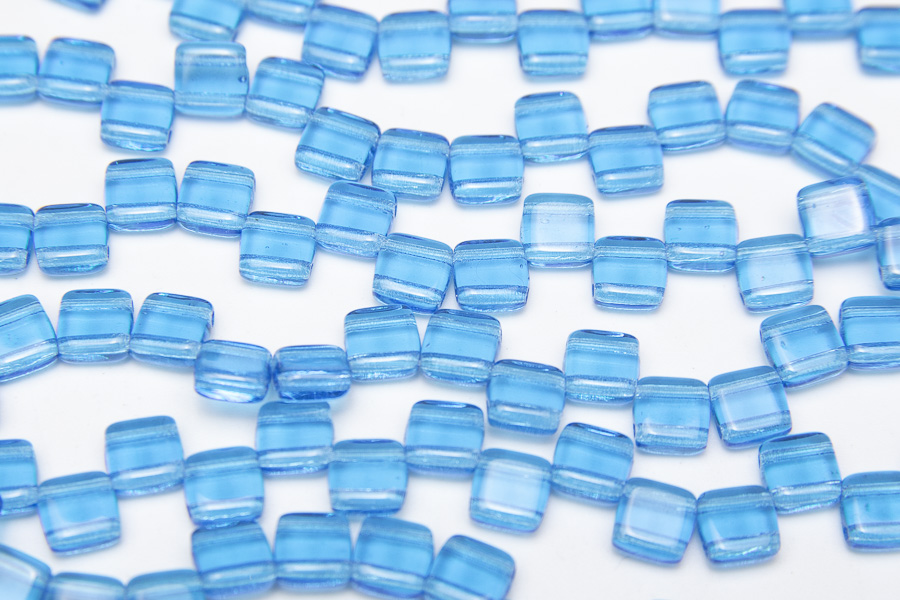 A 33 bead strand of Transparent Azure 2-Hole Tiles made from the highest quality pressed Czech Glass. With 2 holes passing through each one, these beads are excellent for multistranded jewellery and bead weaving designs.