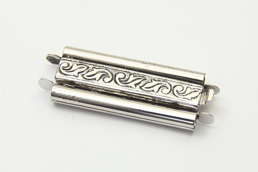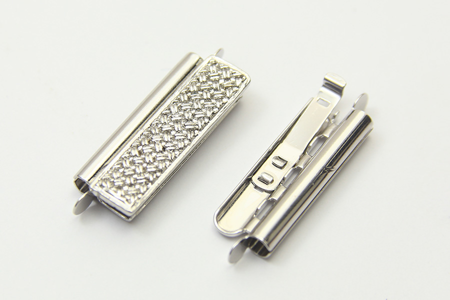 An elegant wave design antique silver Plated Beadslide Clasp. 10x29mm. Slide the end of you bracelet into the tube clasp and bend the sides with pliers to close. A perfect professional clasp for your woven seed bead or bead loom project. Quick, easy and elegant.
