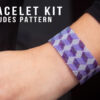 This beautiful geometric patterned bracelet is a great jewellery making kit for beginners or those looking to learn or improve their even count peyote skills. This bracelet kit uses 3 beautiful colours of size 11/0 Miyuki Delica Beads to create a multicolour tumbling block patterned bracelet.