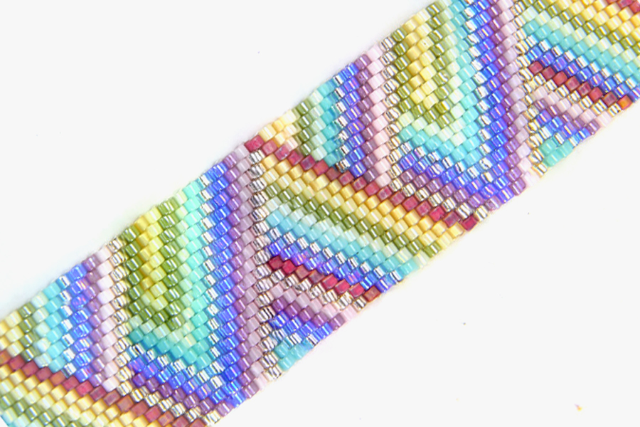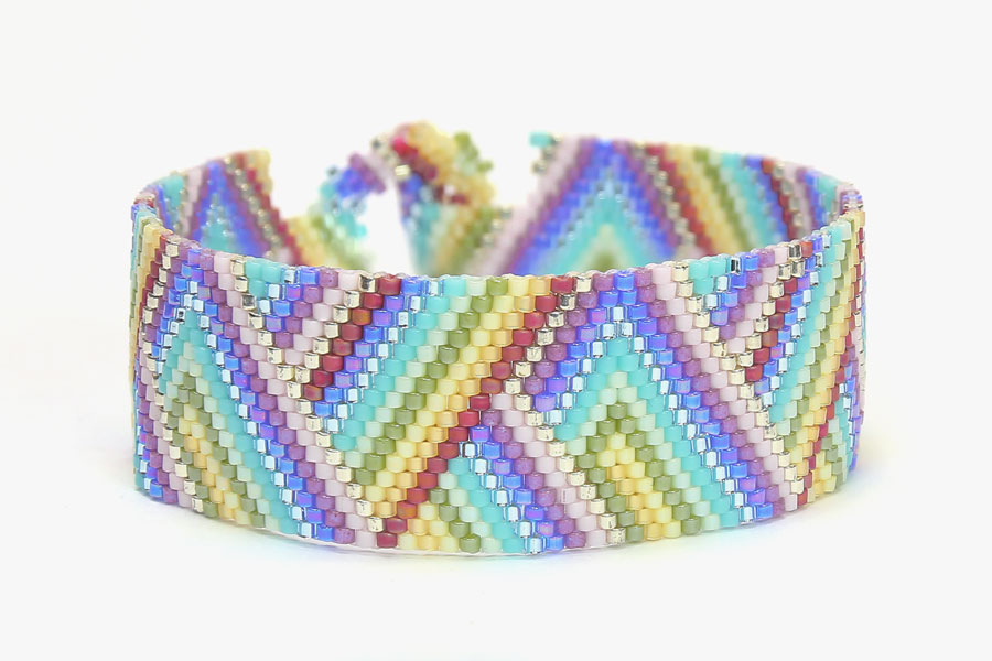 This beautiful pastel striped bracelet kit is a great jewellery making kit for beginners or those looking to learn or improve their odd count peyote skills. This bracelet kit uses eleven beautiful colours of size 11/0 Miyuki Delica Beads to create a multicolour stripe patterned bracelet.