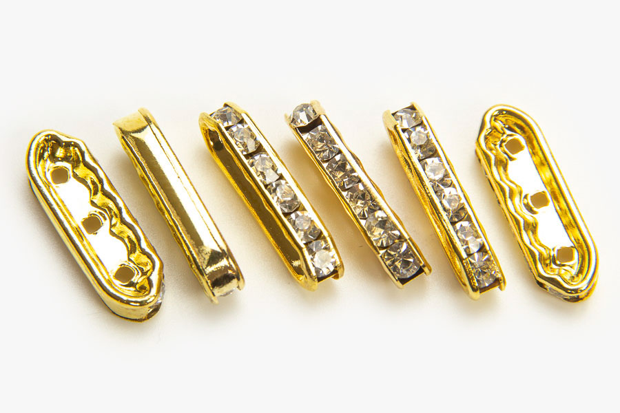 20x6mm Gold Plated Bar Crystal 3 Hole Slider 6 Pieces
