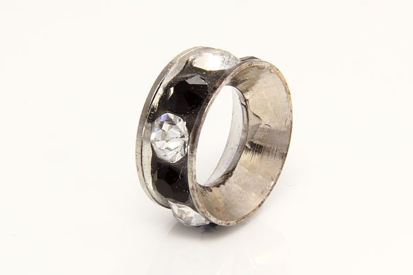 A beautiful Pandora Style Jet and Clear Antiqued Ring crystal studded bead with a 4mm hole. They make an excellent addition to your jewellery.