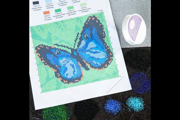 The second in a series of four, the beautiful Arazzo Blue Morpho Butterfly kit, including all beads, Arazzo Backing Fabric, a needle, thread and instructions is here.