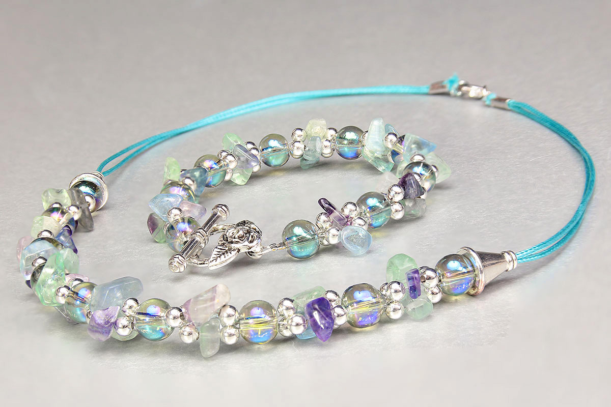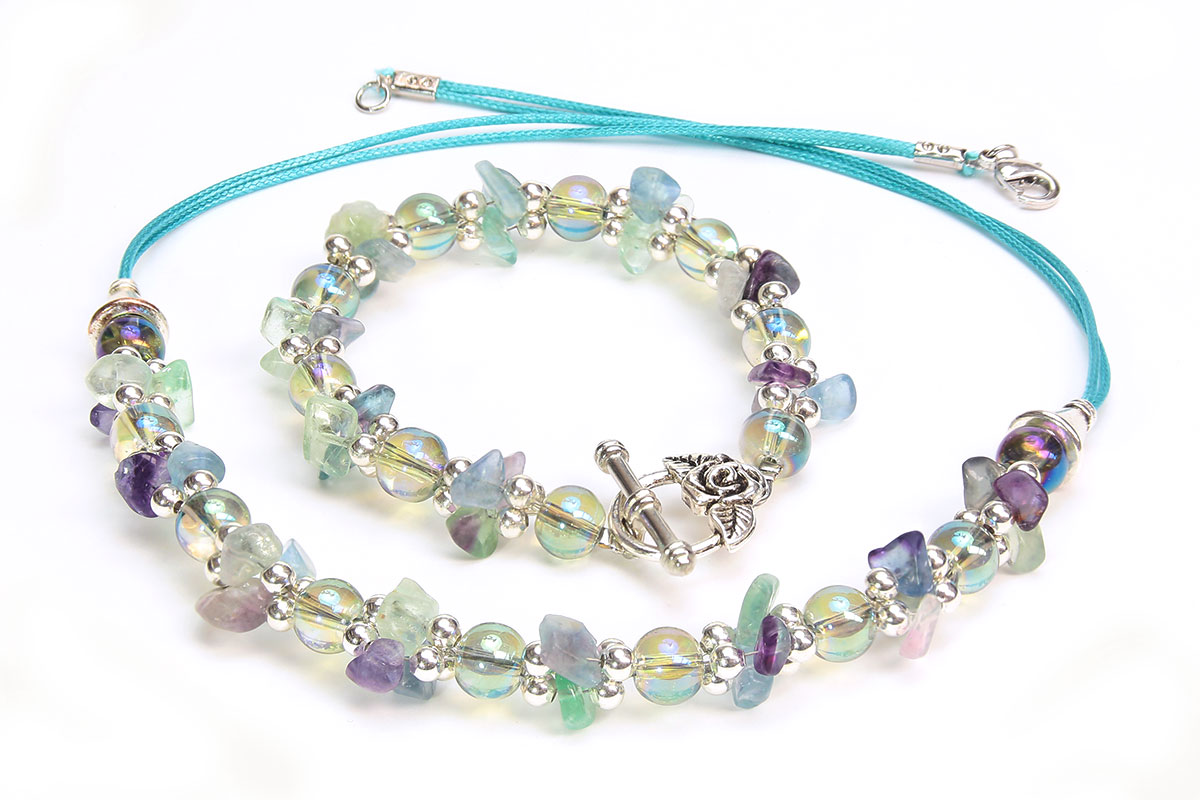 The gemstone and crystal Tranquility necklace and bracelet kit is here, including full written instructions with pictures for every step of the way! Using an array of basic jewellery making techniques, this stunning necklace and bracelet set is extremely easy to make. This fresh and interesting design is a perfect kit for beginners or advanced jewellery makers alike.