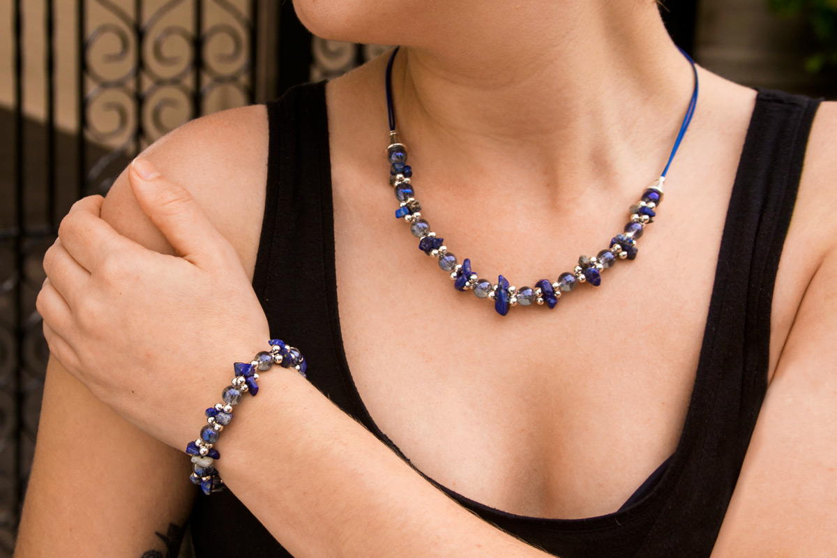 The gemstone and crystal Tranquility necklace and bracelet kit is here, including full written instructions with pictures for every step of the way! Using an array of basic jewellery making techniques, this stunning necklace and bracelet set is extremely easy to make. This fresh and interesting design is a perfect kit for beginners or advanced jewellery makers alike.