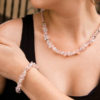 The Tranquility necklace and bracelet set is made with beautiful quality semi precious gemstones, clustered between perfectly colour matched 8mm Crystals and adorned with 4mm spacer beads. The finished design is light and luxurious, sitting extremely comfortably while still exuding quality.