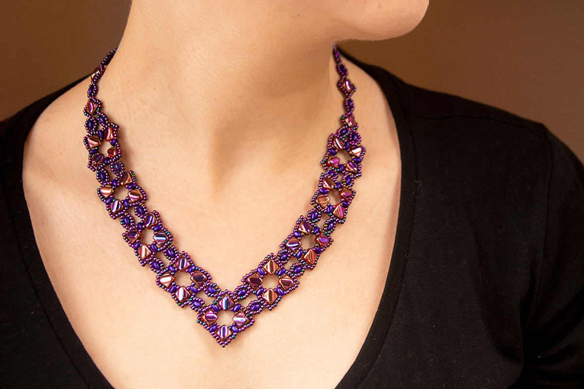 Dress up any outfit with the gorgeous Berkeley Square Necklace Kit. With an eye catching geometric design it really does stand out from the crowd. This kit oozes style and class with beautifully crafted elegant square silky beads, preciosa twins and dainty seed beads.