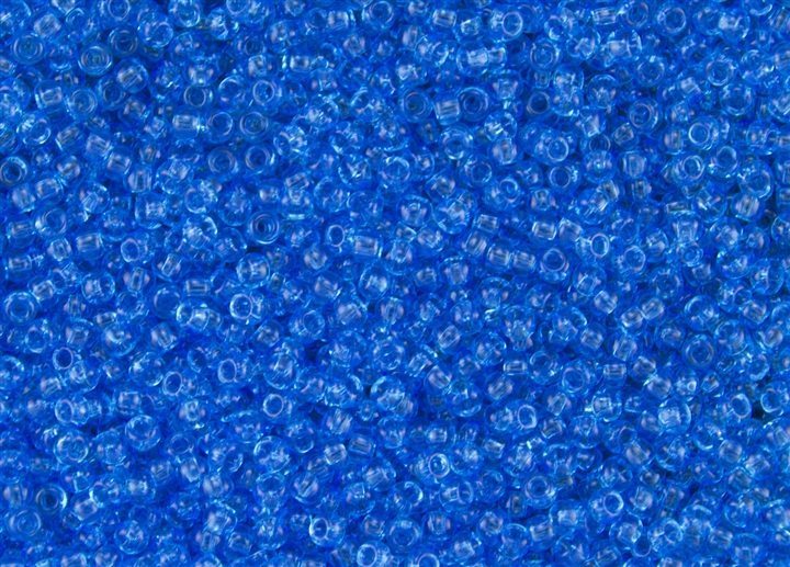 Size 15 Transparent Dark Aquamarine Toho Seed Beads in a 10 gram bag