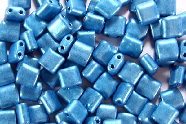 5mm Satin Azure Mini Tiles, 10g, approx 80 beads
