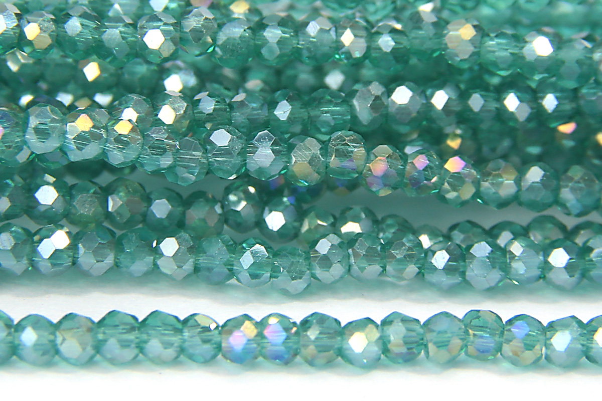 Size 11/0 Teal AB Aurora MicroCrystal beads. Made at 1.5mm x 2.0mm to match the size of Toho 10/0, Miyuki 11/0 or Preciosa 10/0 seed beads perfectly. Made from high quality facetted crystal glass in packs of approximately 200 beads.
