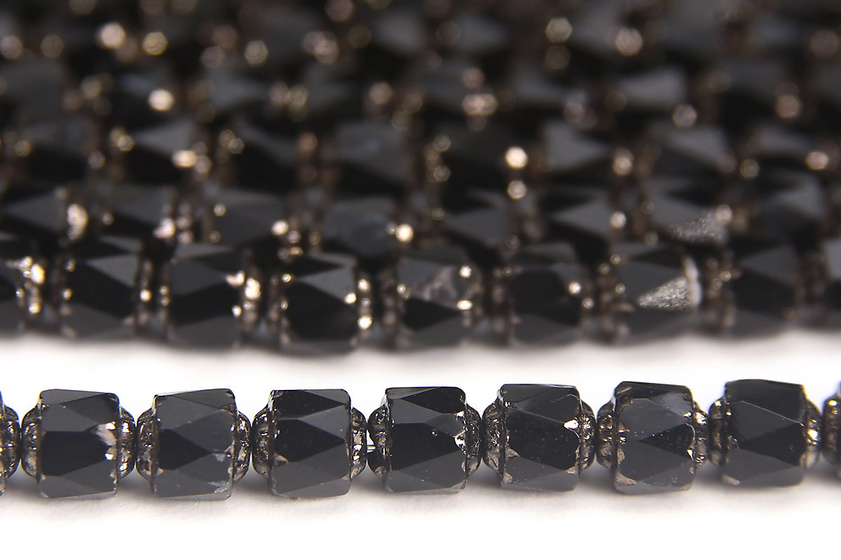 Black Gloss, Silver Crowned 6mm Facetted Cathedral Beads, 25 pieces