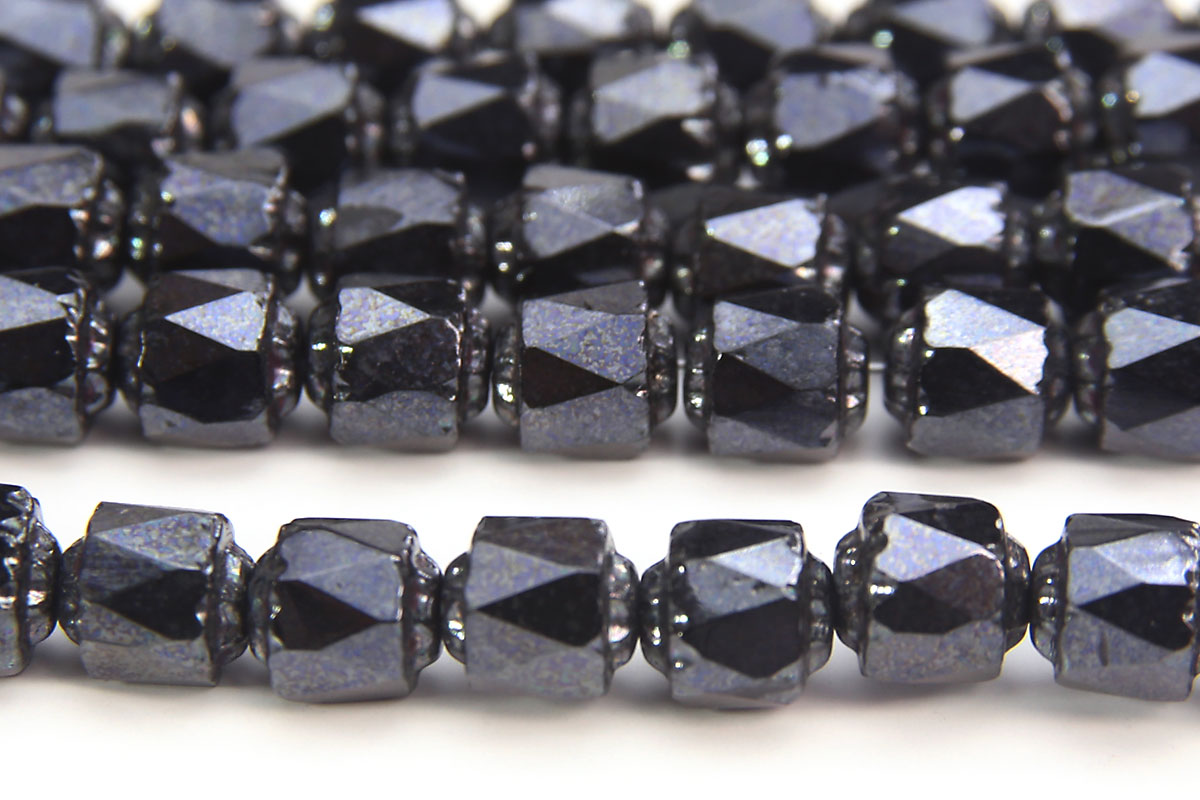 Charchoal Lustre, Silver Crowned 6mm Facetted Cathedral Beads, 25 pieces
