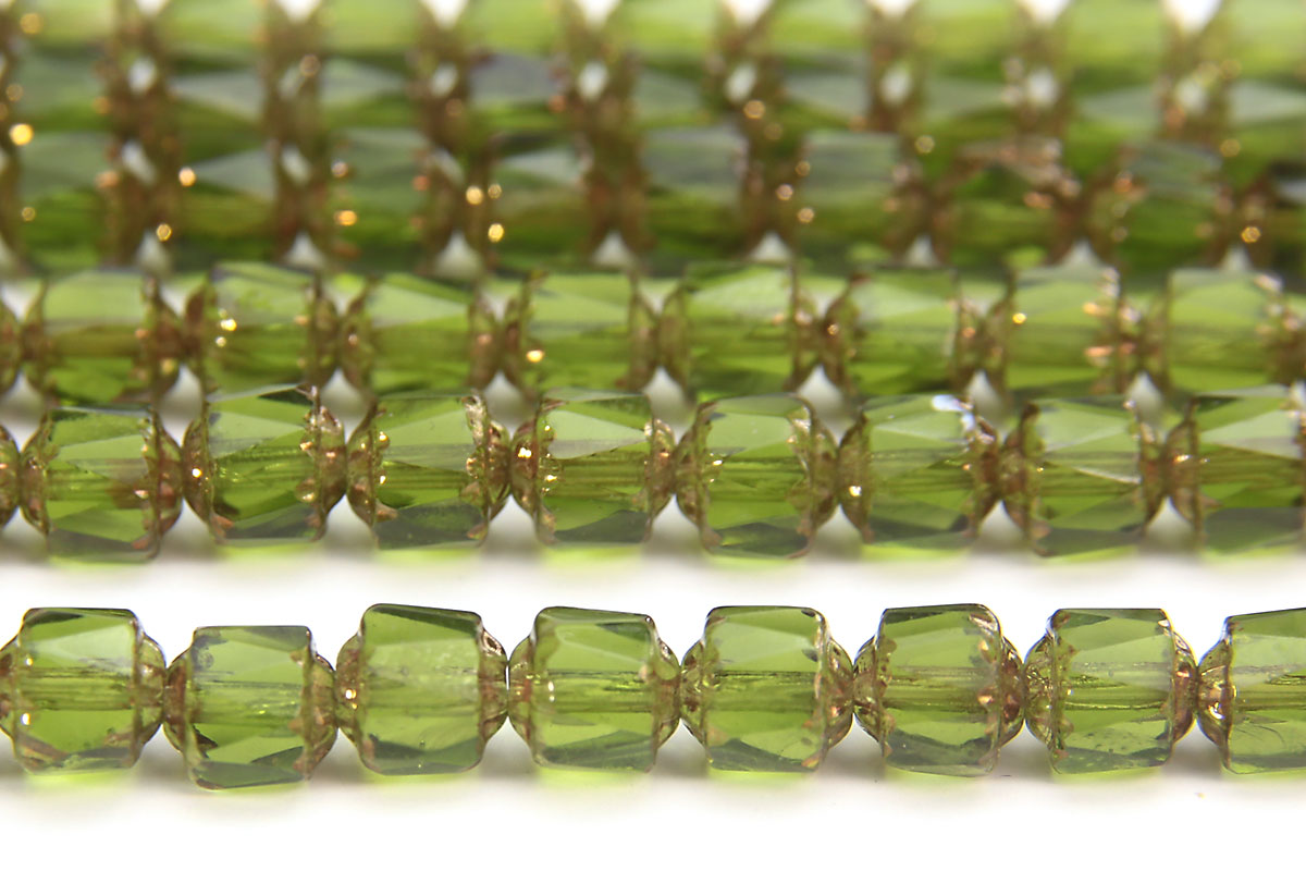 Olive, Copper Crowned Facetted Cathedral Beads