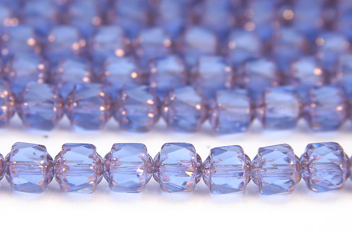 French Blue, Copper Crowned Faceted Cathedral Beads