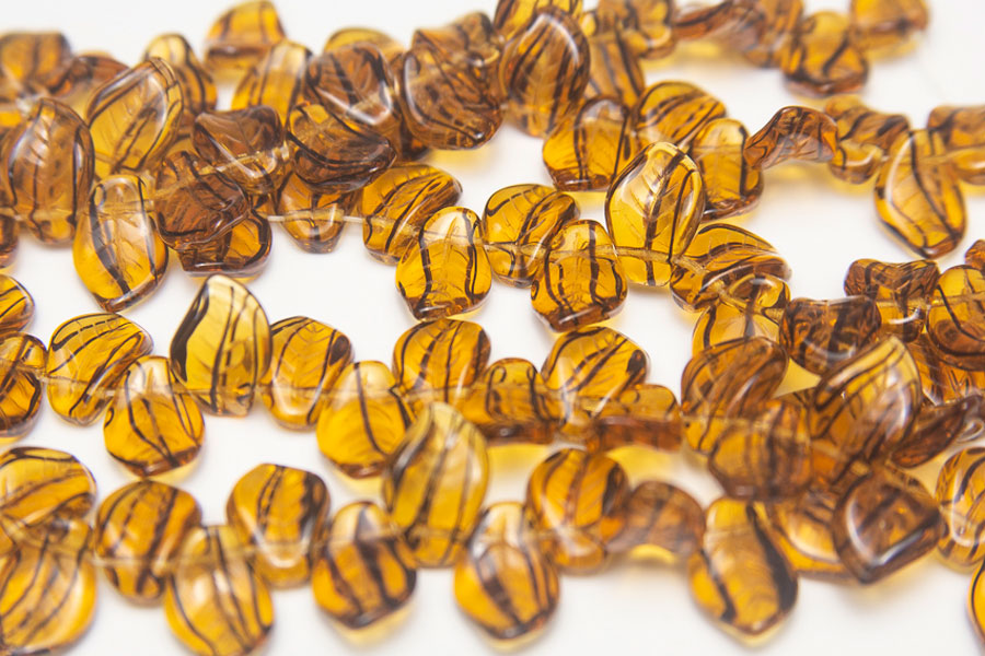 14x11mm Charcoal Striped Amber Top Drilled Leaf made from high quality pressed Czech glass. Each bead is moulded to include a leaf stem structure for added texture. Coming in a pack of 18 beads, these gorgeous beads are perfect for floral designs or nature themed designs