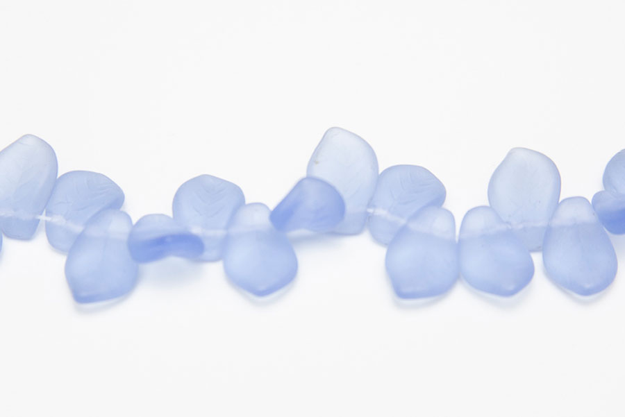 14x11mm Frosted Periwinkle Blue Top Drilled Leaf made from high quality pressed Czech glass. Each bead is moulded to include a leaf stem structure for added texture. Coming in a pack of 18 beads, these gorgeous beads are perfect for floral designs or nature themed designs
