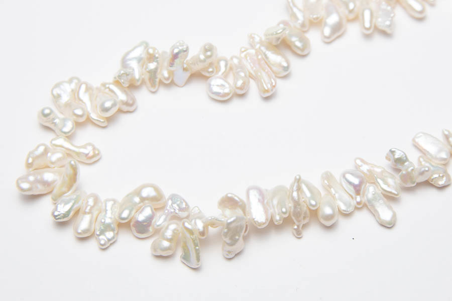 A 16 Inch Strand of High Quality 5x12mm Top Drilled White Keshi Freshwater Pearl Beads.
