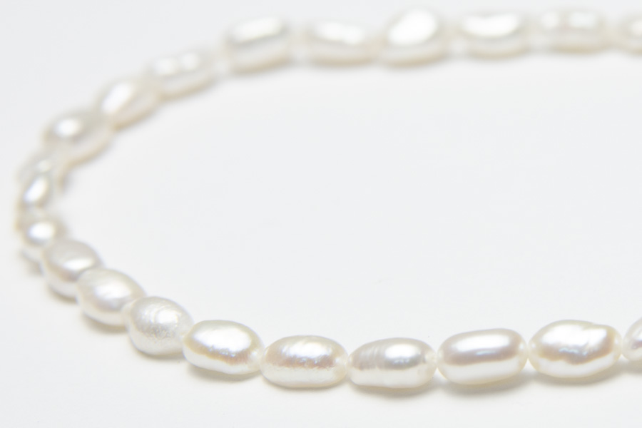 A 16 Inch Strand of High Quality 5x7mm Centre Drilled White Keshi Rice Freshwater Pearl Beads.