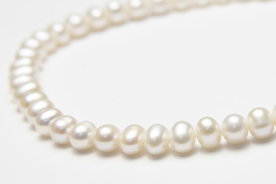 A 16 Inch Strand of High Quality 6.5-7mm Centre Drilled White Potato Freshwater Pearl Beads.