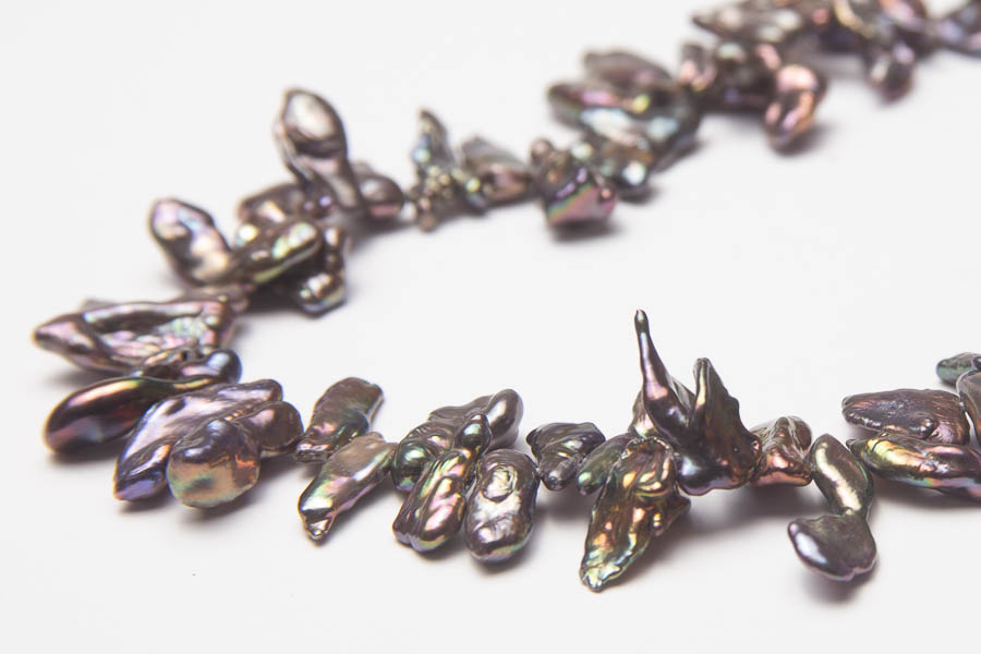 A 16 Inch Strand of High Quality 6x15mm Top Drilled Peacock Keshi Freshwater Pearl Beads.