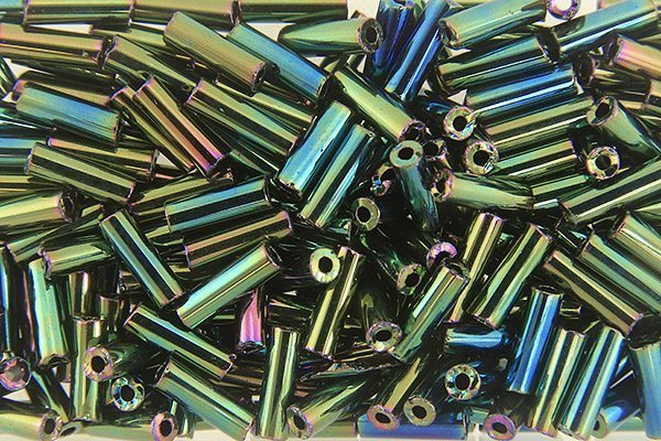 7mm Green Iris Preciosa Bugle Beads, 20 grams