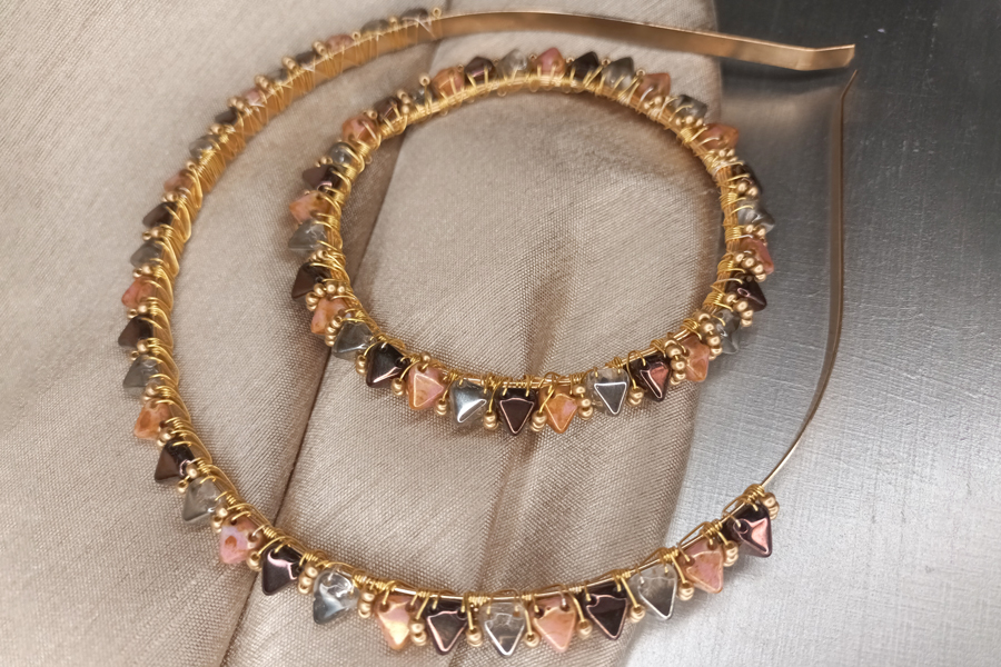 With this bundle you can make a gorgeous beaded bangle using Czech 2 Hole Pyramid Beads. This bundle includes 2 assorted colours of Pyramid beads, Preciosa Seed Beads and high quality 0.5mm Artistic Wire for Jewellery Making.