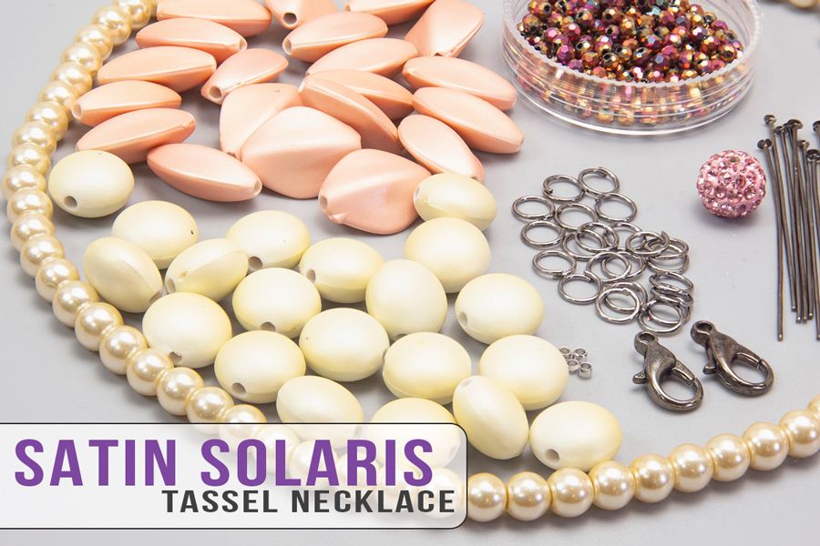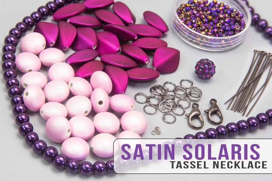 With this bundle you can make a gorgeous matching tassel necklace and bracelet using various shapes and sizes of Satin Solaris Beads, crystals and glass pearls!
